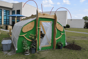 A visit to the Strelitz Early Childhood Education Center’s garden reveals some changes. In fact, some rather sizable changes—an eight-foot tall caterpillar, to be exact. Situated next to the garden beds in the back yard of the Reba and Sam Sandler Family Campus, the caterpillar is a hoop house, used for yearround growing.
