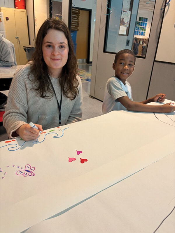 Counselor Eleanor Brodine and Tasan Suber enjoy some free draw time at Camper’s Choice.