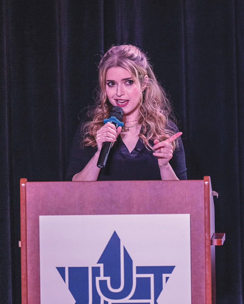 In conversation at the Sandler Family Campus, Anzovin was asked two primary questions: How can Jewish individuals reclaim their voice on social media? And what would she say to someone struggling with fear while trying to show up authentically as Jewish?