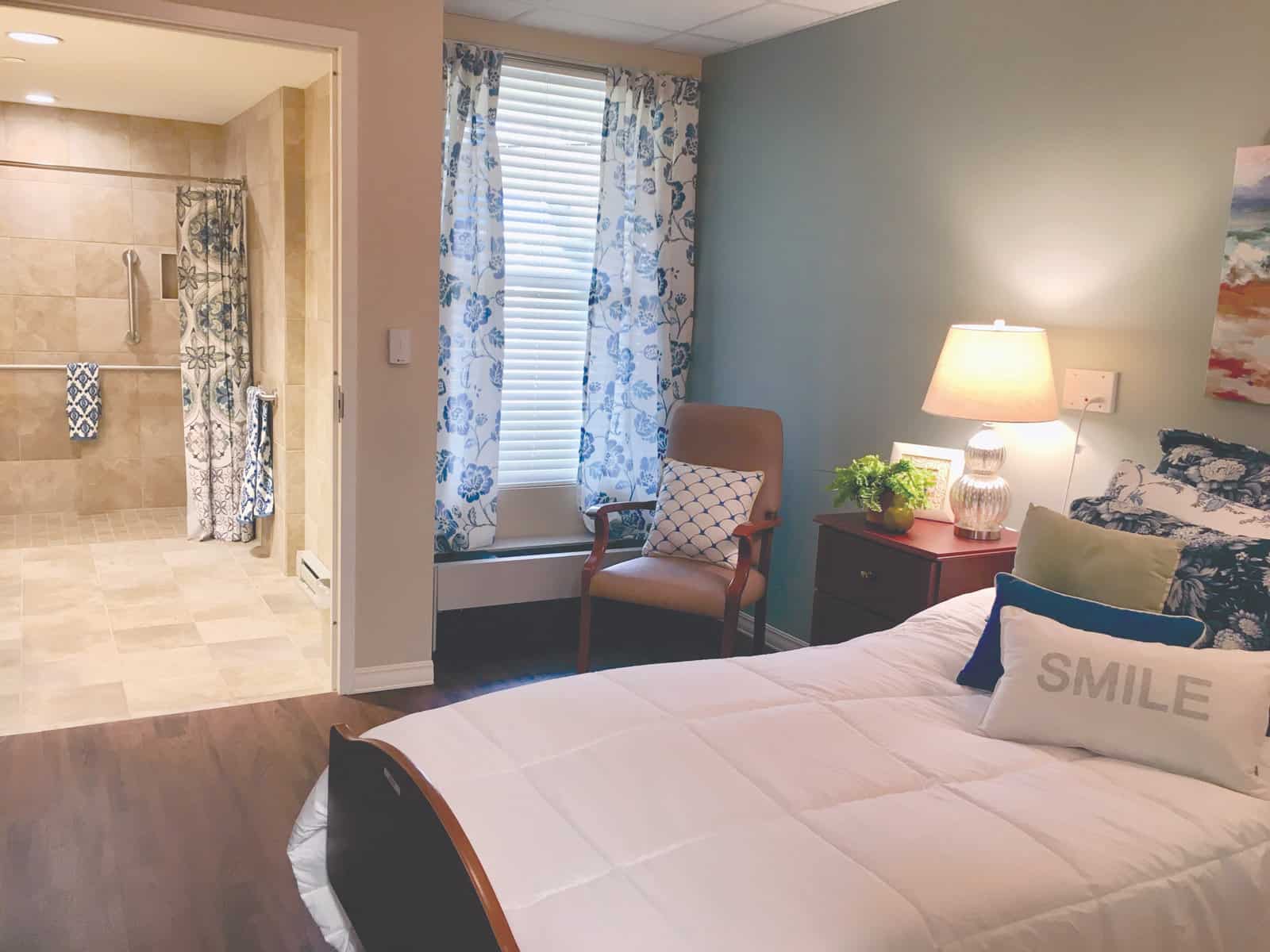 “This is someone’s home, whether they’re here for rehab, or for long-term health care. There’s no reason the space shouldn’t feel like home and be beautiful,” says Marcia Brodie, BSV director of marketing, “We are delighted every time a family member says, ‘I’d love to have a shower this nice in my home.”’