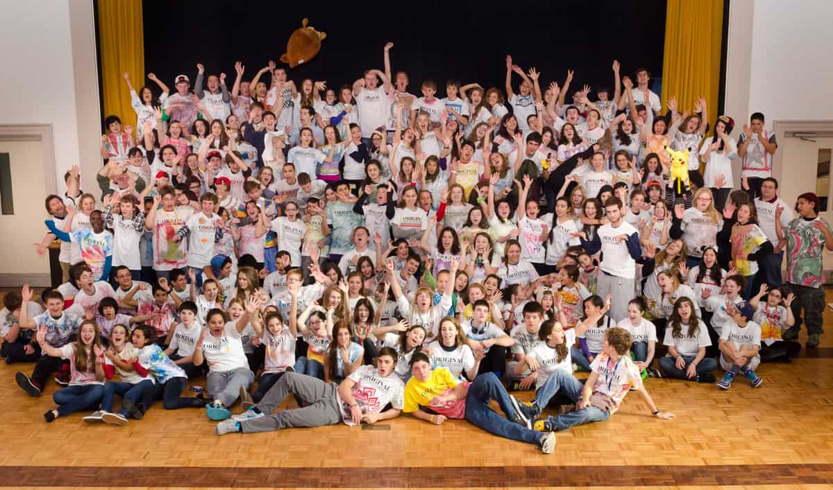 They arrived at OST bright and early Saturday morning to celebrate Shabbat as a community and learn about the weekend’s theme, “Everyone Needs an Original Moment.” After more dancing and singing during Shabbat services, NFTY-MAR moved into a day of programming, each written by the Quadchairs. In the first program, participants were prompted to draw something without any further instructions, and then had a discussion about the limitations normally put on their creativity. After lunch, the teens learned how to balance being original and being part of a group by engaging in a fun movement activity. They then learned about the disastrous effects of Hurricane Sandy and what they can do to help, a program based off of “Am I My Brother’s Keeper?” the NFTY’s selected study theme for the year. Finally, to end the afternoon, each member of NFTY-MAR had their own “original moments” and decorated their blank white t-shirts. The teens left the temple at 3 pm for a few hours of bonding with their host families and to rest up before the evening excitement.