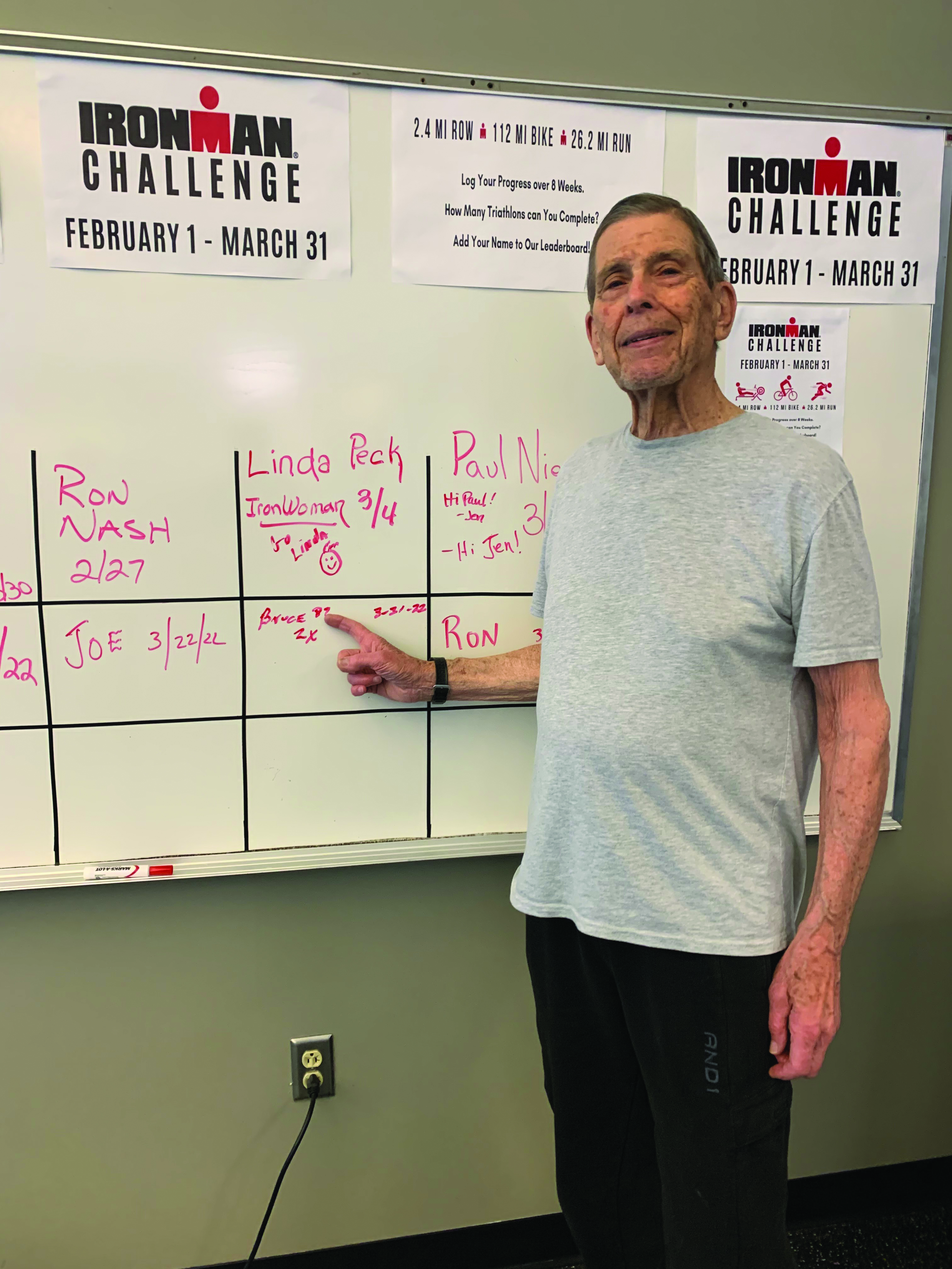 In fact, Longman completed the JCC’s Ironman Challenge that took place during February and March. The eight-week indoor Ironman challenge included 2.4 miles rower/swim, 112 miles on the bike and 26.2-mile run/walk.