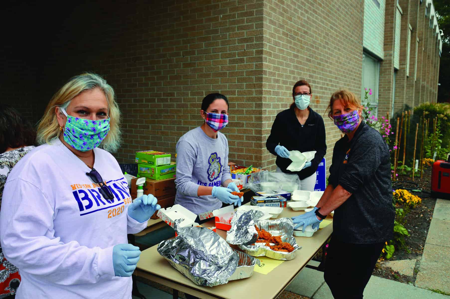 Wainger turned ‘How can we make this happen?’ into a drive-thru, hot food delivery popup on Fridays from 3 pm to 5 pm. Beth El member and volunteer Lisa Delevie picked up food. Beth El provided a tent to shade the volunteers, of which there were only 10 for safe distancing. The Shirley Avenue parking lot became the distribution site. With help and donations from Beth El members, CBN, Y-not pizza, Gourmet Gang, Mercy Chefs, and Krispy Kreme,