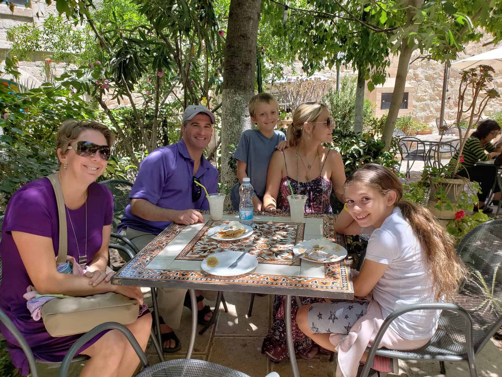 On Friday evenings it is a sacred space. Shabbat in Jerusalem can mean a variety of things—it can be walking to services on Saturday morning; getting up SUPER early to get to Masada before it’s too hot to walk the snake path; or it can be a walking tour of the Old City. I opted for the tour and was not at all disappointed. Following in the footsteps of our guide Sarah Tuttle-Singer, we visited places on and off the city’s beaten path, stepping into each of its four quarters— sometimes at ground level, other times from rooftops—to see it through Sarah’s eyes—the eyes of a person who had lived there, gotten to know its inhabitants, studied its movement, then wrote it all down in a book: Jerusalem, Drawn and Quartered: One Woman’s Year in the Heart of the Christian, Muslim, Armenian, and Jewish Quarters of Old Jerusalem. Sarah’s tour brought us to places that many of us had never known (even those who’d been to the Old City many times). I was particularly surprised to walk into a building on Via Dolorosa, only to be “transported” like Dr. Who to a lush, flowering Austrian Garden, featuring bistro tables replete with steaming mugs of coffee and plates of strudel. I may or may not go back some day, but I was so glad to have been!