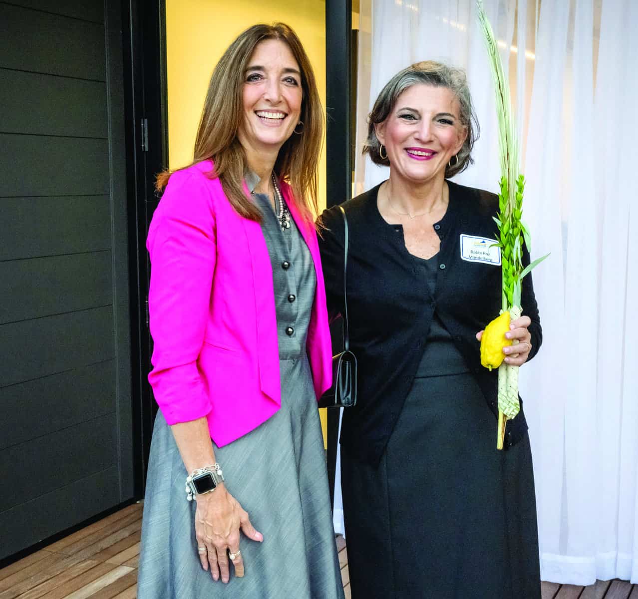 Speaker Eileen Filler-Corn and Rabbi Roz Mandelberg observe the mitzvah of waving the lulav and etrog at a gathering in Downtown Norfolk during Sukkot. The 56th Speaker of the Virginia House of Delegates, Filler-Corn is the first woman and the first Jewish person to hold that position.