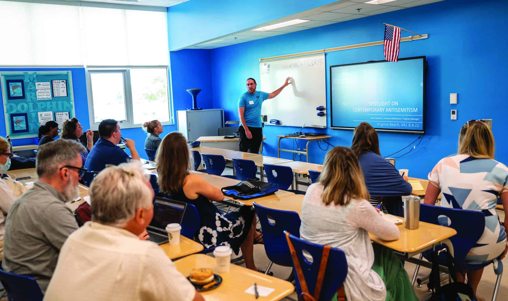 Educator attendees say they appreciated the resources of Echoes & Reflections and the Holocaust Commission, and are looking forward to utilizing them this school year. Kaitlin Haddock from Lynnhaven Middle School says she learned “how to teach in a way that sparks conversation.” Courtney Bennis from Cox High School says she couldn’t wait to use the media literacy lesson with connections to today in the classroom.