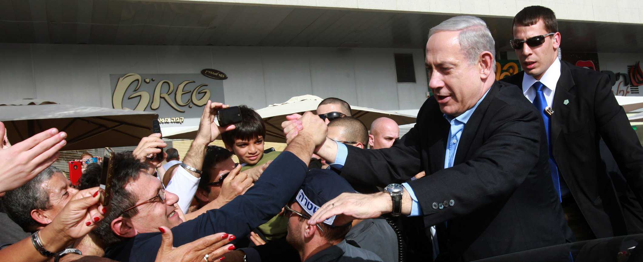 Israel's Prime Minister Benjamin Netanyahu seen shaking hands with Israeli citizens during a visit to the southern city of Ashdod, as Israelis go to vote in Israeli general elections for Israel's 19th parliament. January 22, 2013. Photo by Yossi Zamir/Flash90
