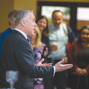 - Dr. Jonathan Schanzer speaks to a group before the community event.