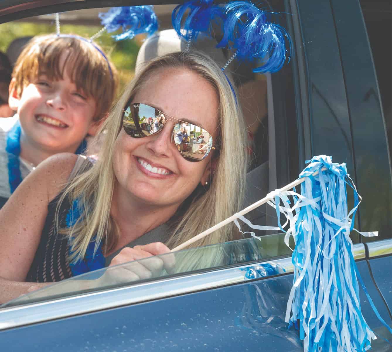 The sun was shining and the air crisp, making it a perfect day to hang out of car windows and stand up through sunroofs waving Israeli flags and streamers to celebrate Yom Ha’atzmaut, Israel’s 73rd Independence Day, at the Sandler Family Campus on Sunday, April 18.