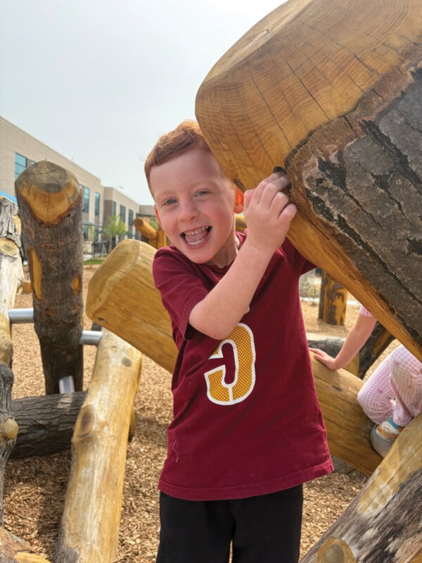 Aiden Coneys explores the new playground on the Sandler Family Campus.