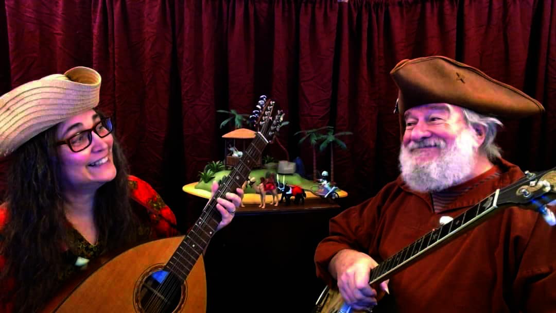 Zentz grew up in a household full of music with his mother, Margy, playing piano at home and his dad, Jerry, playing sax and clarinet in combos in jazz’s postwar heyday as well as songs from the shtetl à la klezmer. Zentz himself took piano lessons for three years and learned banjo from Pete Seeger’s book, How to Play the 5-String Banjo. Today, he plays guitar, harmonica, jaw harp, banjo, ukulele, hurdy-gurdy, concertina, dulcimer, accordion, noseflute, and “just about anything within reach,” and Jeanne, who considers herself his “backup band,” plays string instruments, percussion, and recorders.