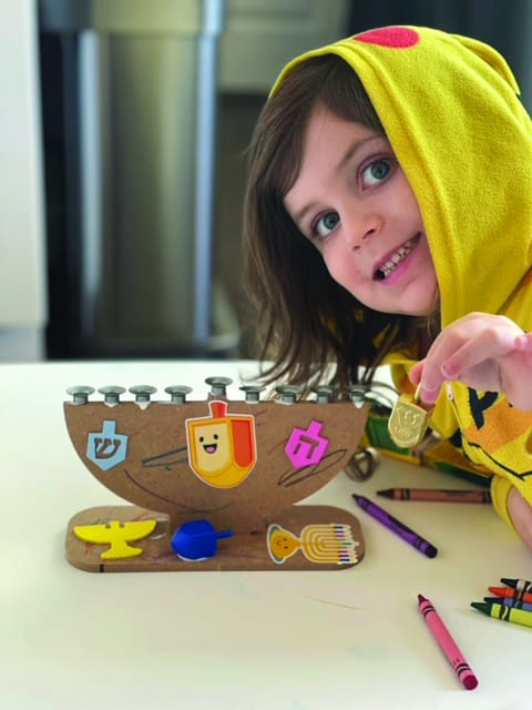 “Hanukkah in a Box” partnered with the community’s annual Latkepalooza, adding a physical element to this year’s virtual event. The children shared the Hanukkiah they made with their box during a community candle lighting with Rabbi Marc Kraus of Temple Emanuel. Each box recipient also received a copy of The Ninth Night of Hanukkah by Erica Perl. The author joined live on Zoom for Latkepalooza, sharing her book and leading the children in creating thank you cards for the shamashim (helpers) in their lives.