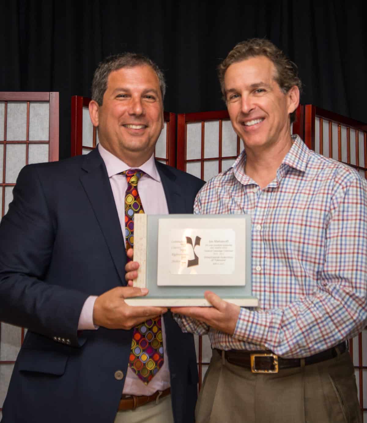 Joyce Strelitz presented the Leonard R. Strelitz Young Leadership Award to Marc Abrams, who serves as the UJFT Young Leadership Campaign chair, and Jason Hoffman, who is completing a stint as chair of the UJFT Young Adult Division Cabinet.