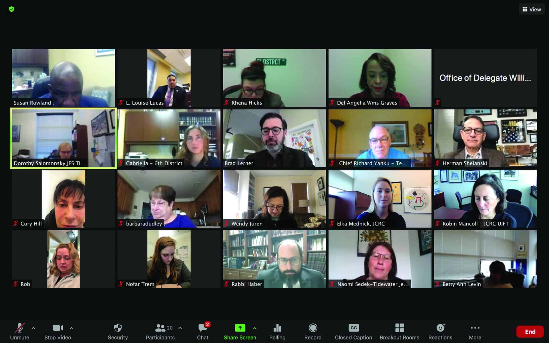 During the week of January 31, 45 members of the Tidewater Jewish community signed into Zoom meetings with members of the Virginia General Assembly for Virginia Jewish Advocacy Day[s] 2022.