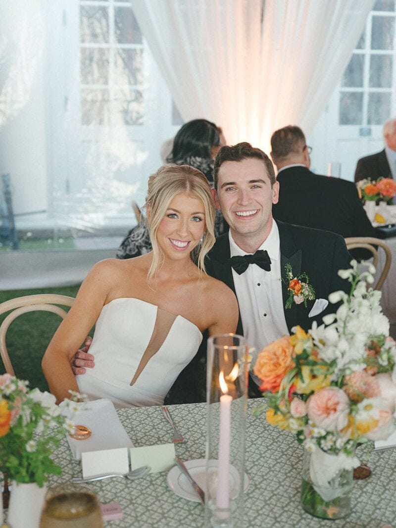 Changing into a reception dress adds a second chapter to the wedding event and another chance for the bride to express her style. Both Testa and Gershon changed from a wedding gown to a party dress in the later hour. Alec Gershon even changed from his black tuxedo into a white dinner jacket for the remainder of the evening.