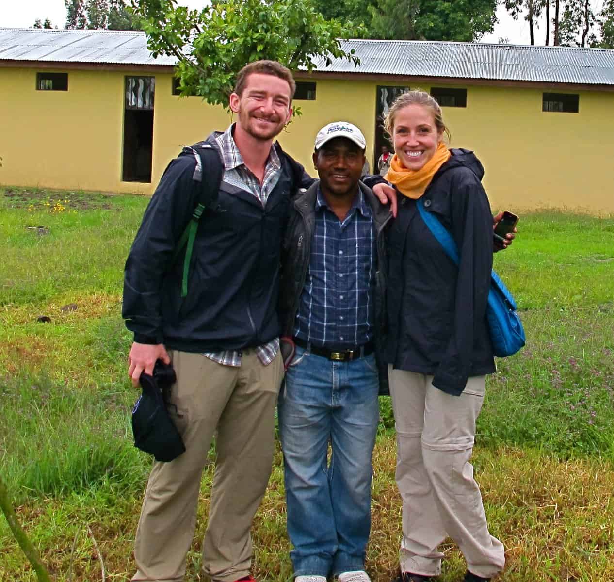 Working in Gondar, Ethiopia, Jewish Service Corps Fellows Max Sandler and Elizabeth Kurtis with Ethiopian friend.